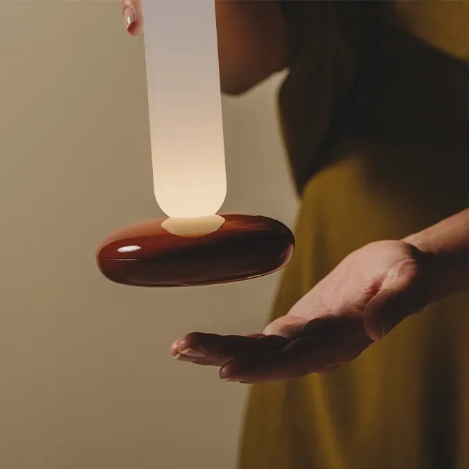 Aunque concebida para interiores, su diseño inalámbrico permite que Alba trascienda los límites del espacio. Su luz invita a disfrutar de atmósferas íntimas tanto dentro como fuera, acompañando encuentros y pausas con la misma naturalidad